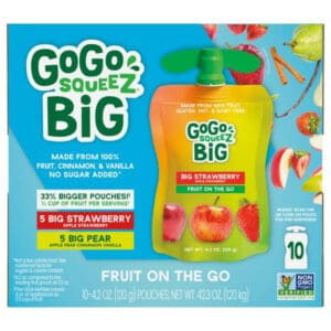 GoGo Squeez Applesauce, Fruit on the Go, Big Strawberry, Big Pear quantity