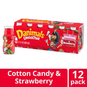 Danimals Smoothie Strawberry Explosion and Cotton Candy Dairy Drink Multi-Pack, Easy Snacks for Kids, 12 Ct, 3.1 OZ Smoothie Bottles quantity