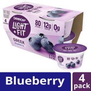 Dannon Light + Fit Dannon Light + Fit Greek Blueberry Fat Free Yogurt, Creamy and Delicious Gluten Free Yogurt, 4 Ct, 5.3 OZ Yogurt Cups quantity