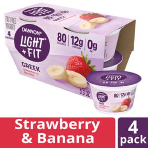 Dannon Light + Fit Dannon Light + Fit Strawberry Banana Greek Fat Free Yogurt, Creamy and Delicious Gluten Free Yogurt, 4 Ct, 5.3 OZ Yogurt Cups quantity