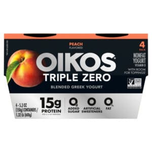 Oikos Triple Zero Peach Greek Yogurt quantity