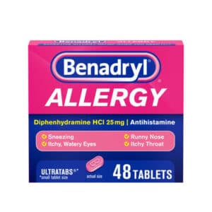 Benadryl Ultratabs Antihistamine Allergy Relief Medicine, 25 mg Diphenhydramine HCl Tablets For Relief of Cold & Allergy Symptoms Such as Sneezing, Runny Nose, & Itchy Eyes & Throat, 48 ct quantity
