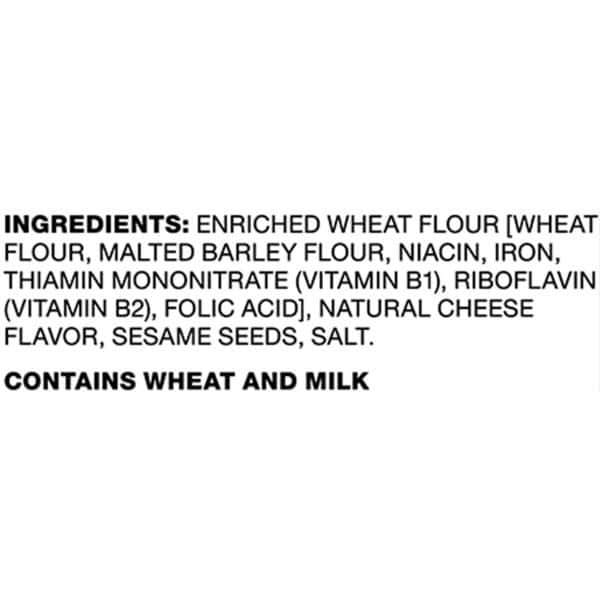 Enriched Wheat Flour [wheat Flour, Malted Barley Flour, Niacin, Iron, Thiamin Mononitrate (vitamin B1), Riboflavin (vitamin B2), Folic Acid], Natural Cheese Flavor, Sesame Seeds, Salt.