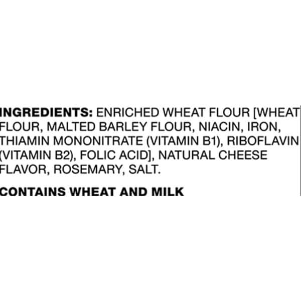 Enriched Wheat Flour [wheat Flour, Malted Barley Flour, Niacin, Iron, Thiamin Mononitrate (vitamin B1), Riboflavin (vitamin B2), Folic Acid], Natural Cheese Flavor, Rosemary, Salt.
