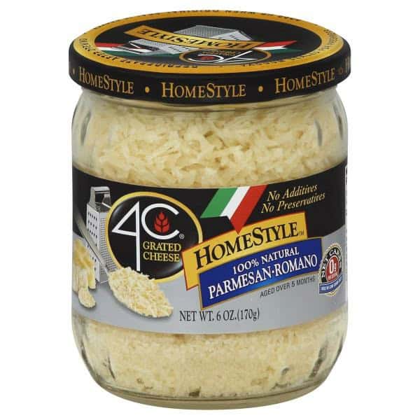 Grated Parmesan Cheese [pasteurized Part Skim Milk, Cheese Culture, Salt, Enzymes (rennet)], Grated Imported Italian Pecorino Romano Cheese [pasteurized Sheep’s Milk, Cheese Culture, Salt, Enzymes (rennet)]