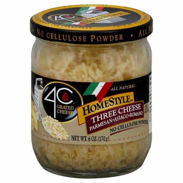 Grated Parmesan Cheese [pasteurized Part Skim Milk, Cheese Culture, Salt, Enzymes], Grated Asiago Cheese [pasteurized Part Skim Milk, Cheese Culture, Salt, Enzymes], Grated Imported Italian Pecorino Romano Cheese [pasteurized Sheep’s Milk, Cheese Culture, Salt, Enzymes].