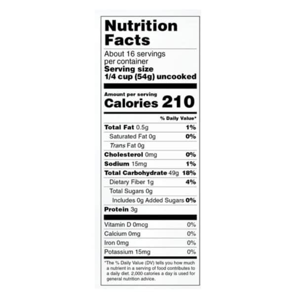 Preparation Instructions: For best results, rinse and soak rice for 20 minutes prior to cooking. Using a medium saucepan, bring 1-1/2 cups of water and 1 cup rice to a boil. Stir, cover with a tight fitting lid and reduce heat to a simmer. Cook 25 minutes. Remove from heat. Don’t touch for 10 minutes. Servings as prepared=4.