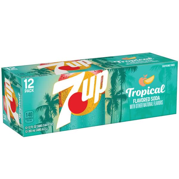 Take your tastebuds on an exotic trip with Tropical 7UP. Tropical 7UP is the cool, crisp combination of the iconic flavor of 7UP blended with tropical flavors of mango and peach. Taste the refreshing fruit flavor of Tropical 7UP®, the caffeine-free, low in sodium, soft drink that delivers great-tasting refreshment like no other soda.