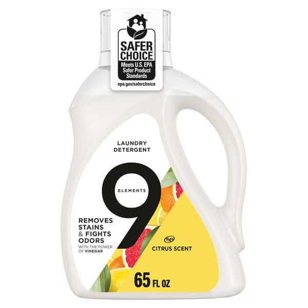 9 Elements Citrus Laundry Detergent brings a burst of zesty fragrance to your laundry routine. 9 Elements allows you to clean with a purpose using never more than 9 ingredients. This gentle yet effective detergent is designed to help fight stains and remove odors while being safe for sensitive skin. With its EPA Safer Choice certification, 9 Elements is an easy choice for taking care of your fabrics. 9 Elements is powered by vinegar and free from artificial preservatives, dyes, thickeners, and brighteners. Enjoy a powerful clean without compromise, using only what you need for a truly refreshing laundry experience.