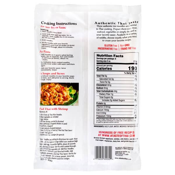 Authentic Thai taste. These authentic rice noodles are essential to Thai cooking. Prepare them with meat, seafood, vegetables or simply dressed in your favorite sauce. Available in a variety of widths, choose exactly what you need to create your favorite recipe. Preservative free.