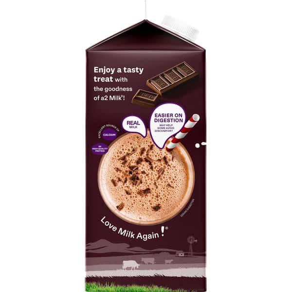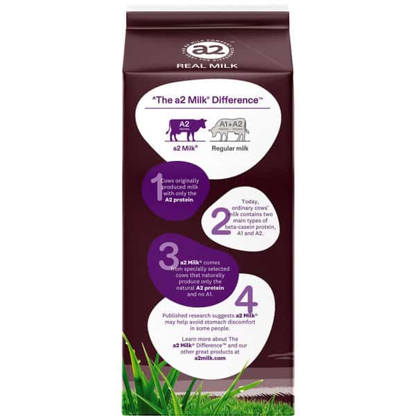 This 2% reduced fat chocolate milk naturally contains the A2 protein, which is easier on digestion and may help some avoid discomfort. It’s also a natural source for calcium and potassium, with added vitamins A&D. Plus, it tastes delicious. A milk the entire family will ask for again and again!
