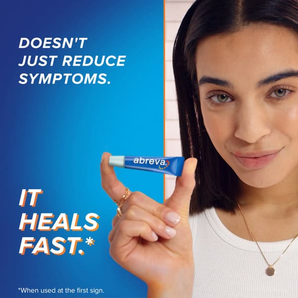 Abreva Docosanol 10% Cream is a cold sore treatment that acts fast to tackle cold sores at their source. Formulated with docosanol 10%, this fever blister and cold sore medication helps to shorten the duration of tingling, pain, burning and itching associated with cold sores if used as directed at the first sign of a tingle. Unlike other cold sore remedies that just soothe symptoms, Abreva Cold Sore Treatment penetrates deep to create a barrier around healthy skin cells to prevent the spread of herpes simplex virus type 1 (HSV-1). Abreva Cream is the only nonprescription cold sore medicine approved by the FDA to shorten healing time to heal cold sores in as few as 2 1/2 days (1). This healing cream should be applied 5 times a day until your cold sore is fully healed, for a maximum of 10 days. This Abreva Docosanol 10% Cream pump bottle is easy to apply and take on the go.