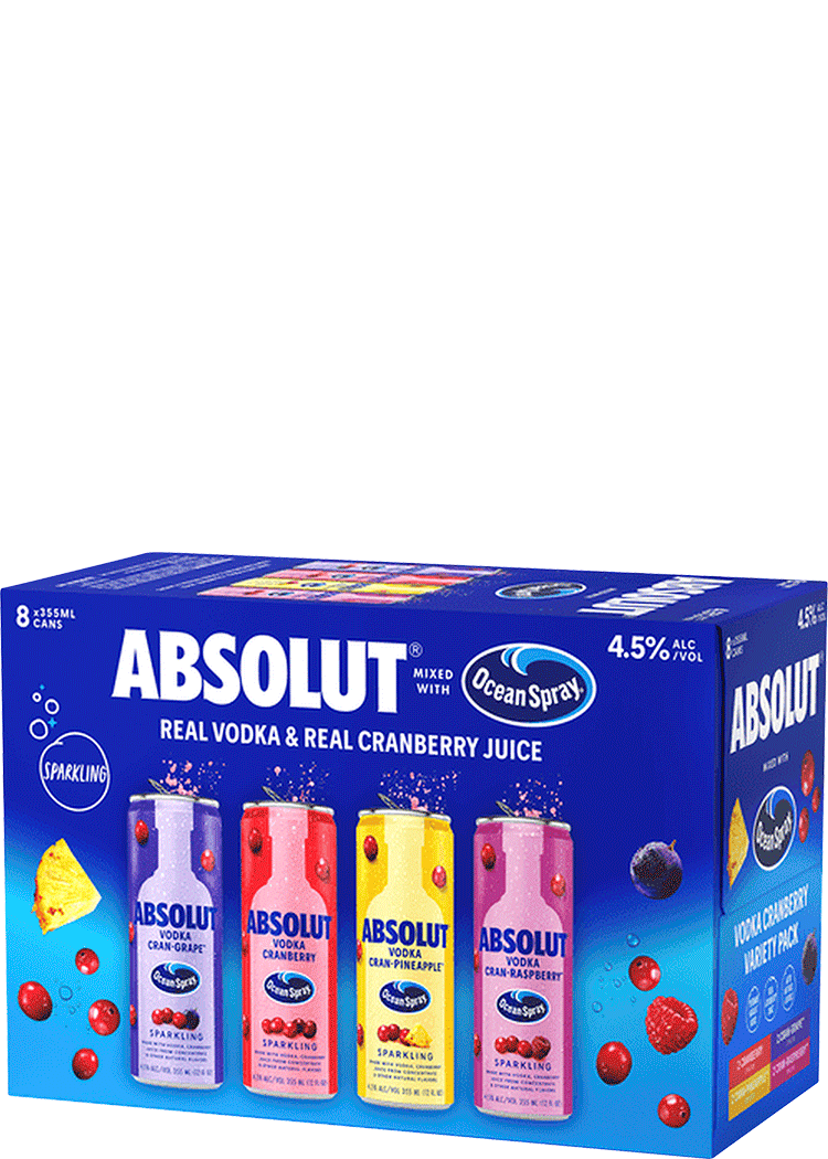 Sweden – 4.5% – The classic combination of Absolut Vodka and Ocean Spray® Cranberry juice in a convenient ready to drink format. Expertly mixed and available in four sparkling flavors. Real Vodka. Real Juice. Really delicious.