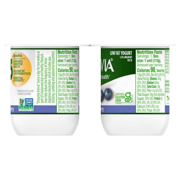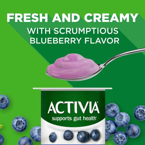 Start every day with Activia Probiotic Blueberry Lowfat Yogurt Cups, as part of your routine, from the #1 doctor-recommended probiotic brand.*** Every spoonful is full of delicious blueberry flavor and creamy texture. Plus, each serving is packed with our proprietary blend of live and active cultures and our exclusive probiotic. Probiotics are the living microorganisms that have been studied and shown to provide specific health benefits, including supporting gut health.* Activia yogurt contains Bifidobacterium lactis DN 173-010/CNCM I-2494, which has been studied and shown to survive passage through the gastrointestinal tract. Making Activia probiotic yogurt a part of your day is an easy way to help support your gut health. Grab an Activia blueberry yogurt for an easy and delicious breakfast or enjoy one in the afternoon as an on the go snack. Your gut is where it all begins. Start with an Activia Probiotic Lowfat Yogurt. *Enjoying Activia twice a day for two weeks as part of a balanced diet and healthy lifestyle may help reduce the frequency of minor digestive discomfort, which includes bloating, gas, abdominal discomfort & rumbling. **Contains 10% DV of calcium & vitamin D per serving. ***Based on a 2024 national weighted survey of 300 doctors.