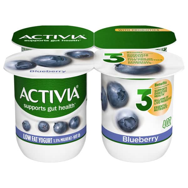• DELICIOUS BLUEBERRY: Pack of four 4 oz snack cups of Activia Blueberry Probiotic Lowfat Yogurt with Blueberry Flavor
