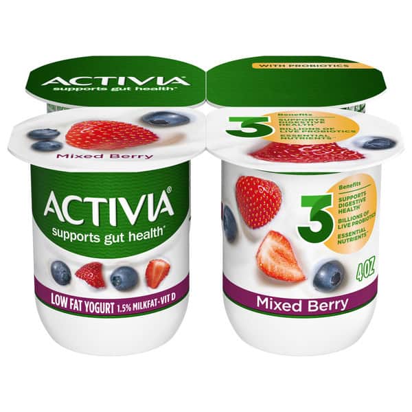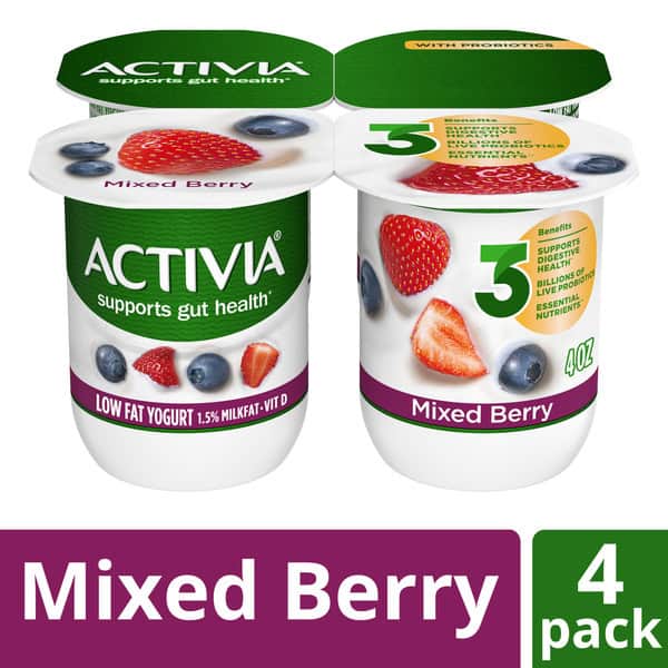 • DELICIOUS MIXED BERRY: Pack of four 4 oz snack cups of Activia Mixed Berry Probiotic Lowfat Yogurt with Mixed Berry Flavor