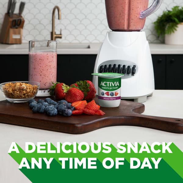 Start every day with Activia Probiotic Mixed Berry Lowfat Yogurt Cups, as part of your routine, from the #1 doctor-recommended probiotic brand.*** Every spoonful is full of delicious mixed berry flavor and creamy texture. Plus, each serving is packed with our proprietary blend of live and active cultures and our exclusive probiotic. Probiotics are the living microorganisms that have been studied and shown to provide specific health benefits, including supporting gut health.* Activia yogurt contains Bifidobacterium lactis DN 173-010/CNCM I-2494, which has been studied and shown to survive passage through the gastrointestinal tract. Making Activia probiotic yogurt a part of your day is an easy way to help support your gut health. Grab an Activia mixed berry yogurt for an easy and delicious breakfast or enjoy one in the afternoon as an on the go snack. Your gut is where it all begins. Start with an Activia Probiotic Lowfat Yogurt. *Enjoying Activia twice a day for two weeks as part of a balanced diet and healthy lifestyle may help reduce the frequency of minor digestive discomfort, which includes bloating, gas, abdominal discomfort & rumbling. **Contains 10% DV of calcium & vitamin D per serving. ***Based on a 2024 national weighted survey of 300 doctors.