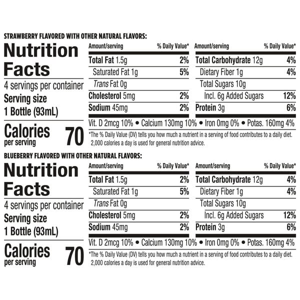 Strawberry flavored with other natural flavors – contains: milk., blueberry flavored with other natural flavors – contains: milk.