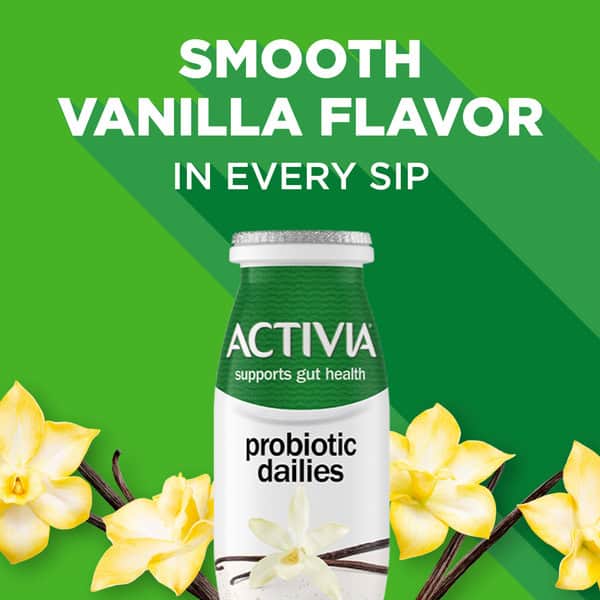 Activia Probiotic Dailies Vanilla Lowfat Yogurt Drinks are made to be quick, easy and tasty. Each serving is packed with our proprietary blend of live and active cultures and our exclusive probiotic. Probiotics are the living microorganisms that have been studied and shown to provide specific health benefits, including supporting gut health.* Activia probiotic yogurt products contain Bifidobacterium lactis DN 173-010/CNCM I-2494, which has been studied and shown to survive passage through the gastrointestinal tract. Activia Probiotic Dailies Vanilla Yogurt Drinks contain essential nutrients** and are an easy, delicious way to get probiotics into your daily health and wellness routine. Rise and shine with a Vanilla Activia Probiotic Dailies. Grab an Activia Dailies drinkable yogurt to support your gut health anytime you’re on the go. Your gut is where it all begins. Start with Activia Probiotic Dailies. *Enjoying Activia twice a day for two weeks as part of a balanced diet and healthy lifestyle may help reduce the frequency of minor digestive discomfort, which includes bloating, gas, abdominal discomfort & rumbling. **Contains at least 10% DV of Calcium & Vitamin D per serving. ***Based on a 2024 national weighted survey of 300 doctors.