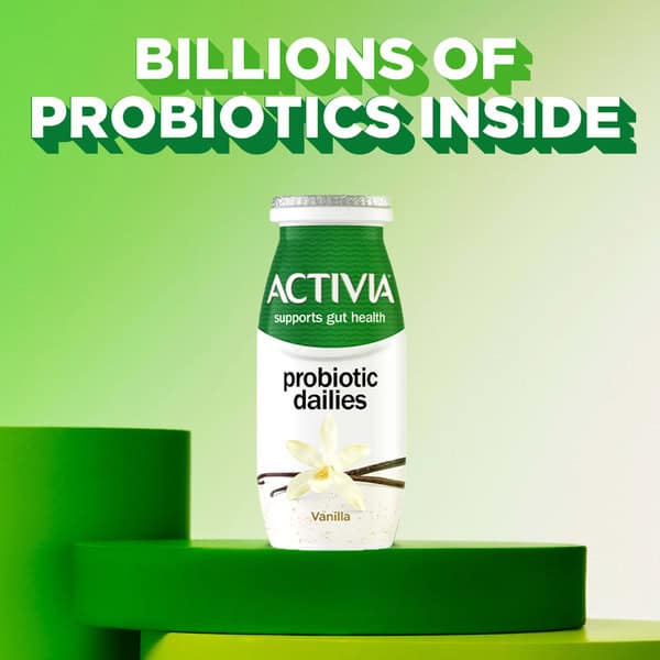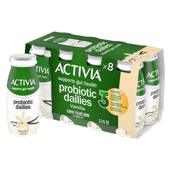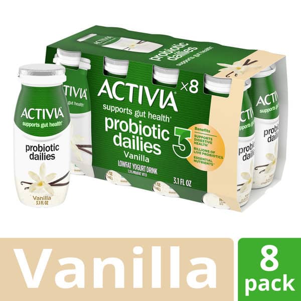 • MOVES WITH YOU: Pack of eight 3.1 fl oz bottles of Activia Probiotic Dailies Vanilla Lowfat Yogurt Drink – a quick, easy way to help you get your daily probiotics