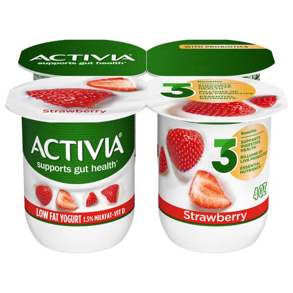 • DELICIOUS STRAWBERRY: Pack of four 4 oz snack cups of Activia Strawberry Probiotic Lowfat Yogurt with Strawberry Flavor