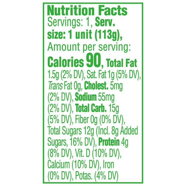 Cultured Reduced Cultured Reduced Fat Milk, Cane Sugar, Strawberries, Water, Modified Food Starch, Less Than 1%: Natural Flavors, Fruit & Vegetable Juice (for Color), Milk Protein Concentrate, Kosher Gelatin, Carrageenan, Agar Agar, Lactic Acid, Calcium Lactate, Vitamin D₃, Live Cultures L. Bulgaricus (2), L. Lactis, S. Thermophilus, Live And Active Probiotic B. Lactis Dn 173-010/cncm I-2494