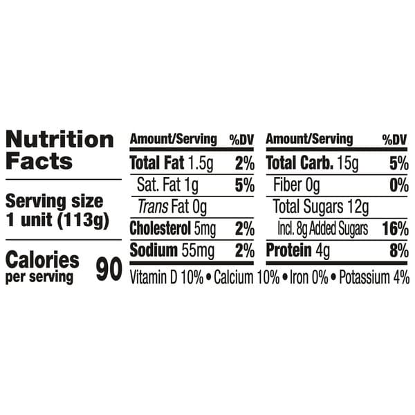 Cultured Reduced Fat Milk, Cane Sugar, Water, Modified Food Starch, Less Than 1%: Natural Flavors, Milk Protein Concentrate, Kosher Gelatin, Agar Agar, Lactic Acid, Vitamin D₃, Live Cultures L. Bulgaricus (2), L. Lactis, S. Thermophilus, Live And Active Probiotic B. Lactis Dn 173-010/cncm I-2494