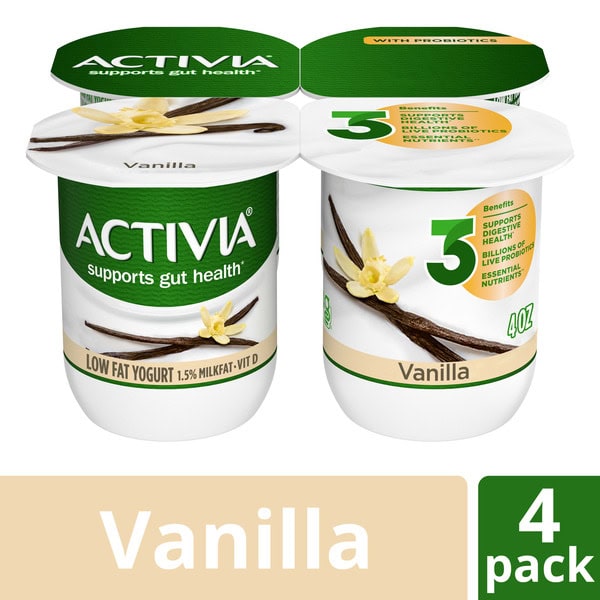 • DELICIOUS VANILLA: Pack of four 4 oz snack cups of Activia Vanilla Probiotic Lowfat Yogurt with Vanilla Flavor