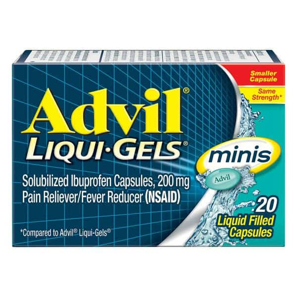 Advil Liqui-Gels minis provide the concentrated power of Advil in a 33% smaller capsule. Easier to swallow without compromising their effectiveness, these liquid-filled capsules get to work in only minutes for powerful relief of headaches, backaches, muscle aches, toothaches, menstrual pain, minor arthritis and other joint pain, and aches and pains of the common cold. Advil Liqui-Gels minis fight pain with the same strength as regular size Advil Liqui-Gels. This pain reliever and fever reducer is designed for fast absorption, providing hours of pain relief. Each mini capsule contains ibuprofen 200mg, a non-steroidal anti-inflammatory drug (NSAID) that is already dissolved, for headache relief, backache relief, menstrual pain relief, joint pain relief and minor arthritis pain relief. By 2022, Advil will feature more sustainable packaging made with 20% less plastic per bottle, to keep nearly 500,000 pounds of plastic out of landfills. Fast pain relief just got mighty small. That’s the power of Advil Liqui-Gels minis.