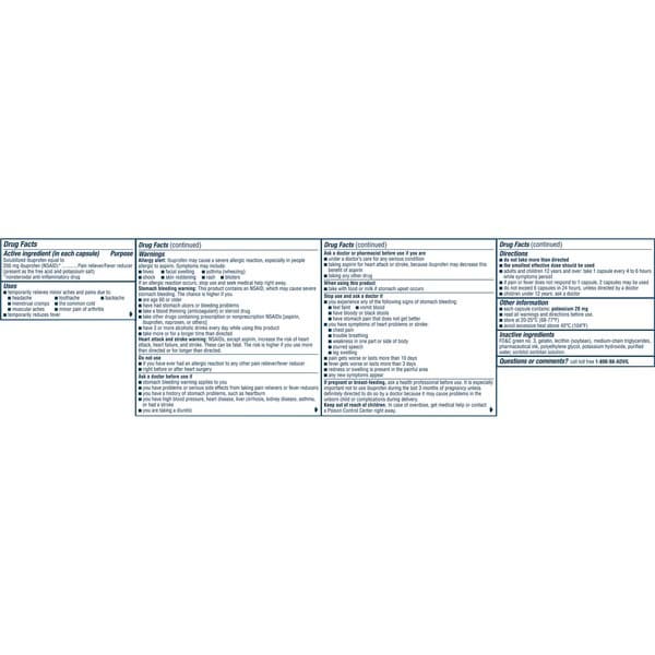 • 200mg ibuprofen liqui-gels that provide fast liquid pain relief right where you need it most, while also reducing fever, and by 2022, new packaging will feature 20% less plastic to keep nearly 500,000 pounds of plastic out of landfills