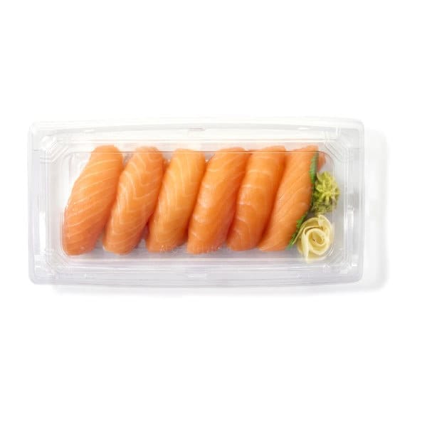 Sushi White Rice (water, White Rice, Sugar, Distilled Vinegar, Salt, Rice Vinegar, Citric Acid, Brown Sugar), Atlantic Salmon*, Pickled Ginger (ginger, Water, Sugar, Fructose, Salt, Contains 20% Or Less Of Acetic Acid, Citric Acid, Malic Acid, Potassium Sorbate As A Preservative), Wasabi (water, Horseradish, Corn Flour, Mustard, Citric Acid, Yellow 5, Blue 1)