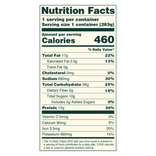 Long Grain Rice, Afia Falafel (Garbanzo Beans, Water, Sunflower Oil, Onion*, Salt, Cumin, Cilantro*, Parsley*, Baking Soda, Garlic*, Cayenne Pepper), Kale, Sweet Potatoes, Lemon Vinaigrette (Water, Sunflower Oil, Natural Flavor, Extra Virgin Olive Oil, Lemon Juice Concentrate, Turmeric*), Sweetcorn, Chickpeas (Chickpeas, Water, Salt), Roasted Pumpkin Seeds (Pumpkin Seeds, Sunflower Oil, Salt), Less Than 2% Of: Raisins (Raisins, Sunflower Oil), Dried Cranberries (Cranberries, Sugar, Sunflower Oil), Yeast Extract, Smoked Sea Salt, roasted corn.