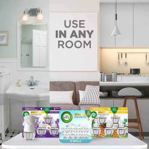 Enhance your home’s scent with Air Wick Scented Oil Refills infused with 100% natural essential oils. Air Wick Scented Oil Refills release continuous fragrance for up to 60 days (based on low setting) so your home smells welcoming. Our latest Air Wick scented oil warmer optimizes airflow for 360 degree fragrance diffusion, reaching every corner of the room for a consistent fragrance experience. The Air Wick Scented Oil warmer also allows you to choose between 5 fragrance settings for just the right amount of fragrance. It continuously diffuses and carefully blends fragrance throughout your home, office, or any space.