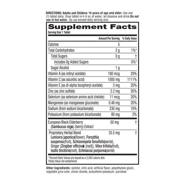 Directions: Adults and Children 14 years of age and older: Use one (1) tablet daily. Drop tablet in 4-6 oz of water, let dissolve and drink. Do not use in hot water. Do not exceed daily serving size.