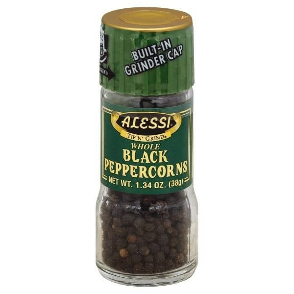 Built-in grinder cap. Finest quality sun dried black peppercorns have a robust flavor and a bold fruity fragrance. Freshly ground spices offer the freshest taste. For nutrition information contact us www.alessifoods.com. Finest quality sun dried black peppercorns have a robust flavor and a bold fruity fragrance. For nutrition information contact us www.alessifoods.com. Packed in the USA.