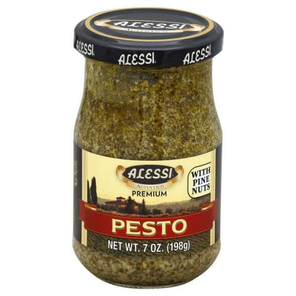 Basil, Alessi Extra Virgin Olive Oil, Imported Pecorino Romano Cheese (sheep’s Milk, Salt, Rennet), Pine Nuts, Sea Salt, Garlic, Phosphoric Acid (acidity Regulator) And Alessi White Balsamic Vinegar.