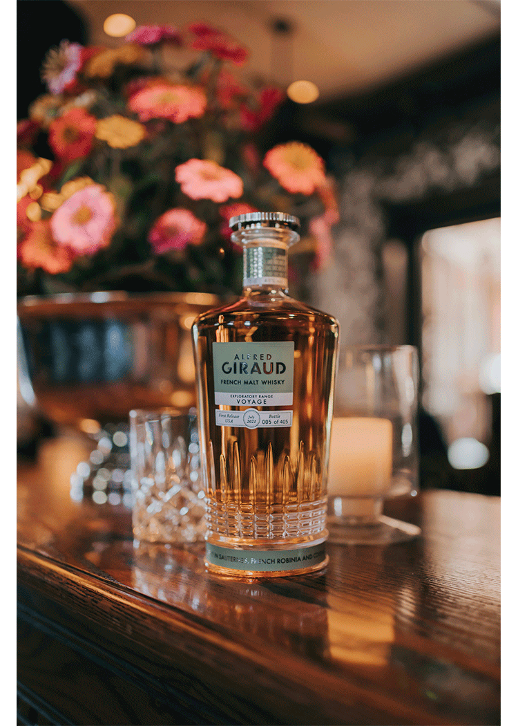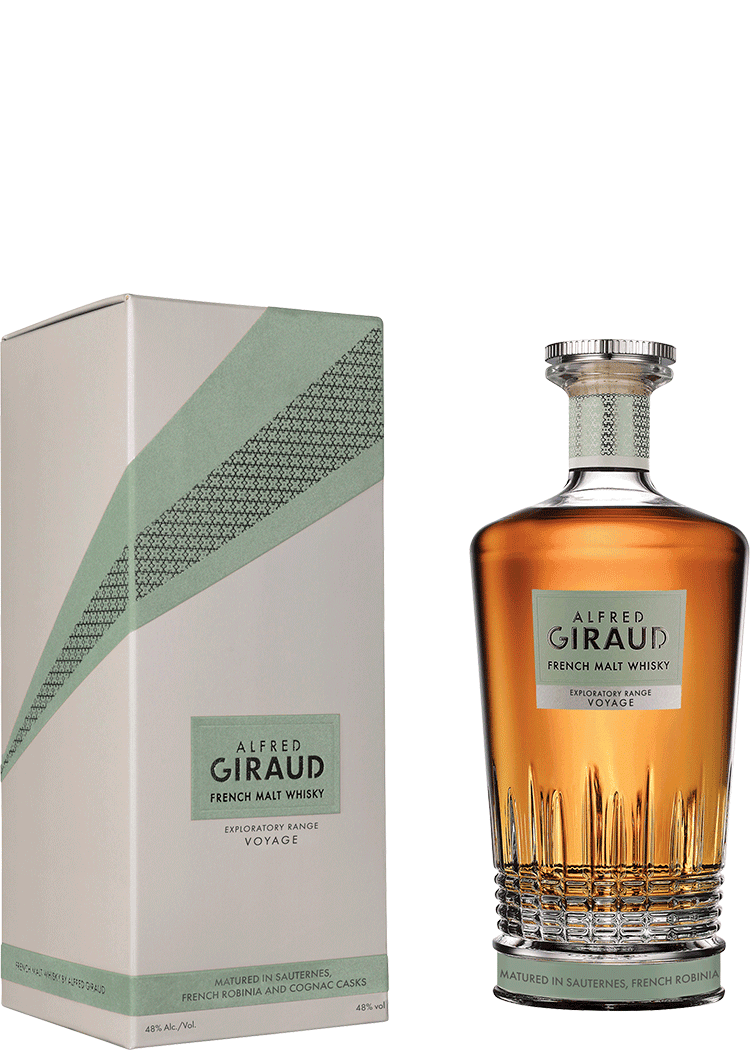 France – Cognac – 48% – VOYAGE has a bold flavor profile, the result of a unique blend & unconventional casks. Two fine single malts are aged in Sauternes wine casks & French Robinia casks before blending & aging in cognac casks.