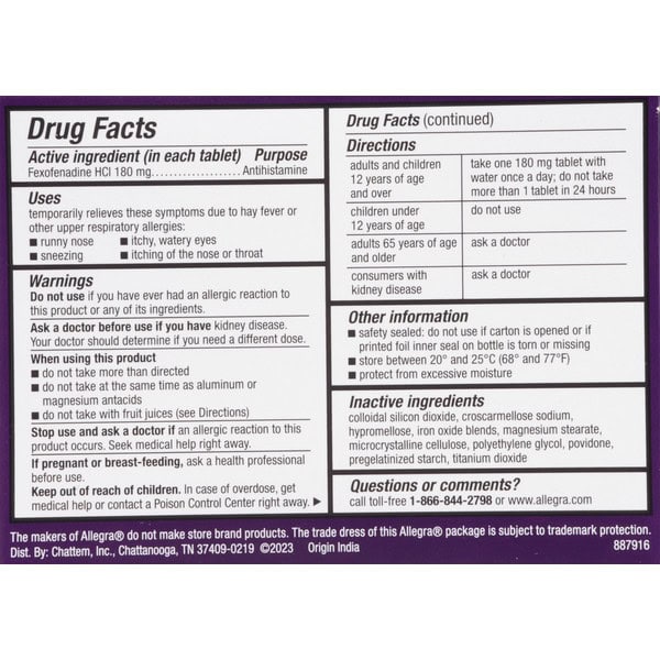 In Each Tablet: Directions: Adults and Children 12 Years of Age and Over: Take one 180 mg tablet with water once a day; do not take more than 1 tablet in 24 hours. Children Under 12 Years of Age: Do not use. Adults 65 Years of Age and Older: Ask a doctor. Consumers with Kidney Disease: Ask a doctor.