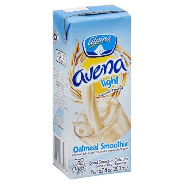 Artificially flavored. 45% fewer calories and 75% less fat than Avena Original. Good source of calcium. Please recycle. FSC: Mix – Carton. Consumer Service: www.alpina.com. Tetra Pak: Protects what’s good. Product of Colombia.