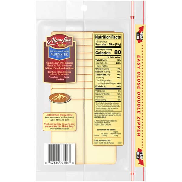 Alpine Lace® Muenster Sliced Cheese adds a creamy flavor to a roasted turkey sandwich, and melts beautifully on a hot, juicy hamburger. Pick up your favorite variety of Alpine Lace® cheese at your local deli without the wait of the deli line.