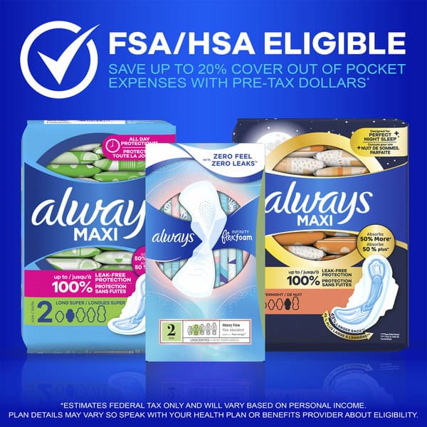 • FSA/HSA Eligible Save up to 20% Cover out of pocket expenses with pre-tax dollars *Estimates federal tax only and will vary based on personal income. Plan details may vary so speak with your health plan or benefits provider about eligibility.