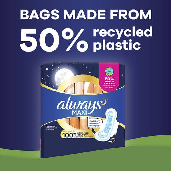 Always Maxi Overnight Pads with Flexi-Wings provide you a PERFECT NIGHT SLEEP with 45% more coverage on the back for up to 100% Leak Free Comfort, no matter how you sleep. Always Maxi Pads with Wings feature the Always advanced 3X Protection System to give you piece of mind day & night. RapidDRY works to wick away gushes fast to absorb more than you may need. The LeakGUARD core locks in leaks for long-lasting protection to keep you fresh and clean, and SecurelyFITS helps the pad stay in place throughout no matter what you do. Make sure that you are getting the right protection from your pad, using the wrong pad size can lead to leaks. Always Maxi Pads come in a range of sizes to fit your flow and size perfectly depending on your needs. If you have a light flow or need a teen-sized pad, then we would recommend using our Always Maxi Pad size 1 to 3. If you have a heavy flow or want overnight protection, then we recommend using our size 4 or 5 Always Maxi Pad. Whether you have a heavy flow or a light one, Always has you covered. Also remember that all Always Feminine Maxi Pads are FSA & HSA eligible! Check with your FSA or HSA plan provider for information on the coverage of period care products.