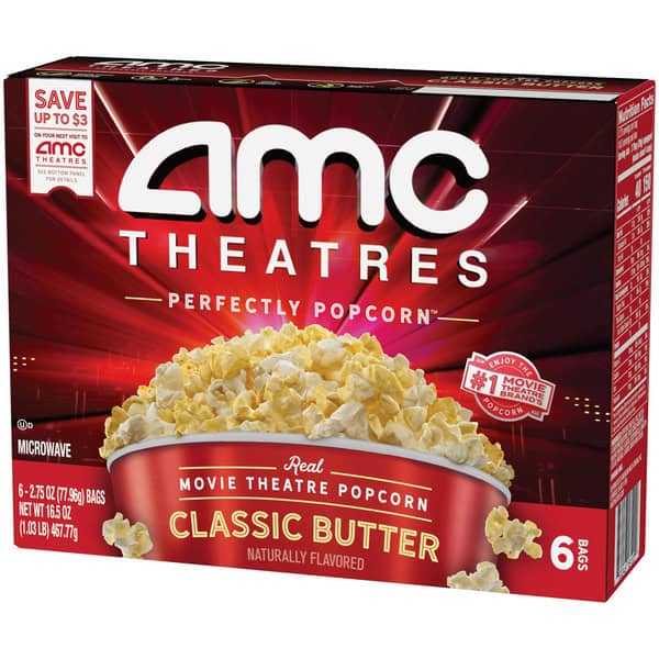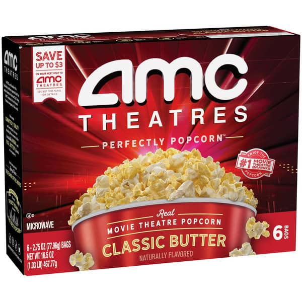 Make movie nights at home feel more magical with AMC Theatres Microwave Popcorn, Classic Butter. Our microwave popcorn has a rich, buttery taste, a delightfully crispy texture, and an irresistible aroma, all inspired by the famous movie theatre recipe of AMC Theatres Perfectly Popcorn. We select the best kernels which pop bigger, eat more tender, and leave fewer unpopped kernels in the bag.