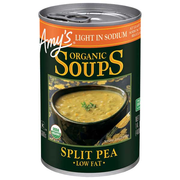 Ready to serve. This traditional American favorite made from organic split peas and vegetables has a surprisingly light, delicate flavor. Responding to customer requests, our chefs have created a line of light in sodium soups with all the flavor and goodness of our regular soups, but containing at least 50% less sodium. Amy’s Kitchen was started when our daughter Amy was born in 1987. We are a family business deeply committed to producing convenient organic foods made with the highest quality ingredients.