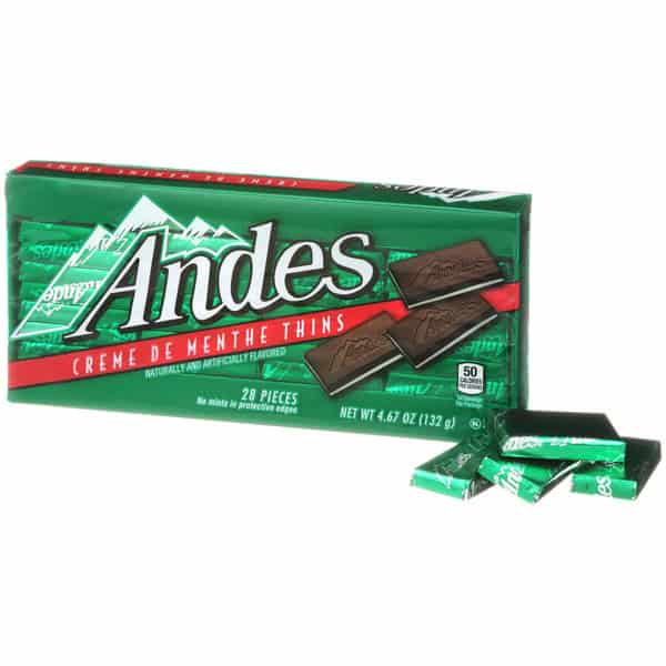 No mints in protective edges. The Andes Commitment: At Andes, we pride ourselves in making the very best candy. We use only the finest ingredients and utilize the most stringent quality control measures to ensure your Andes experience is a memorable one – today, and for years to come.