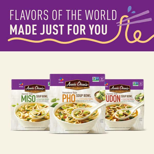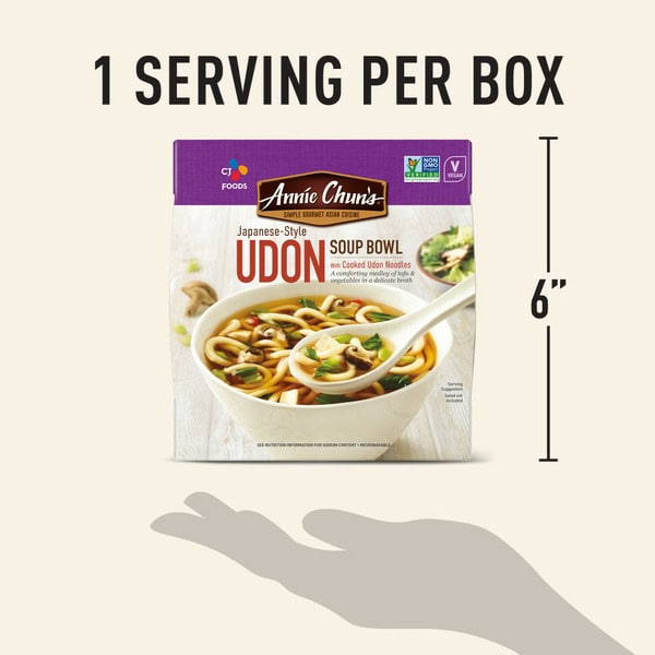 Crafted with care, our Japanese Style Udon Soup Bowl boasts a harmonious blend of our Japanese style broth with hearty Udon noodles that are never fried or dried and are vacuum sealed for freshness. Our comforting medley of bok choy, tofu, Shiitake mushrooms and tender noodles, come together to elevate your eating experience. Enjoy a dish that is crafted with care – whether you’re on-the-go or seeking a quick culinary escape. Immerse yourself in an authentic dish that captures the essence of Asian food culture while relishing in the convenience. With ANNIE CHUN’S Japanese Style Udon Soup Bowl, you’re embarking on a flavor journey that’s rooted in tradition and crafted for modern living. Embrace the perfect balance of taste, your search for the ultimate microwavable delight ends here. Explore the other amazing Asian classics like ANNIE CHUN’S Soup Bowls, Ramen Bowls, Organic Seaweed Snacks, and Organic Nori.