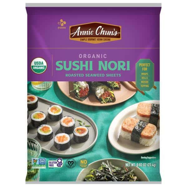 Elevate your eating experience with ANNIE CHUN’S Organic Sushi Nori – the ultimate choice for foodies seeking delicious and authentic Asian flavors. Crafted with care, these Organic nori sheets are the perfect ingredient for a meal done right. Experience the irresistible blend of tradition and convenience. A versatile ingredient for sushi rolls, musubi, kimbap, and much more. Our sushi nori opens doors to delightful and easy meals with its versatility. Whether you’re a seasoned sushi chef or a novice in the kitchen, creating gourmet dishes at home has never been this effortless. These delightful sheets are not only gluten-free and non-GMO but also keto friendly and vegan. Heighten your sushi-making skills and culinary creativity with ANNIE CHUN’S Organic Seaweed Sushi Nori. Indulge in the delight of organic, sustainable, and delicious seaweed. Explore other amazing Asian classics like ANNIE CHUN’S Soup Bowls, Noodle Bowls, Ramen Bowls, Organic Seaweed Snacks, and Organic Nori.
