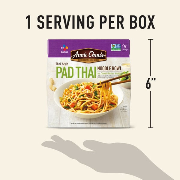 Crafted with care, our Pad Thai Noodle Bowl boasts a harmonious blend of sweet and tangy sauce and Hokkien noodles that are never fried or dried and are vacuum sealed for freshness. Our savory and sweet sauce is in perfect harmony with our peanuts, garlic, sesame seeds, and tender noodles. Enjoy a dish that is crafted with care – whether you’re on-the-go or seeking a quick culinary escape. Immerse yourself in an authentic dish that captures the essence of Asian food culture while relishing in the convenience. With ANNIE CHUN’S Pad Thai Noodle Bowl, you’re embarking on a flavor journey that’s rooted in tradition and crafted for modern living. Embrace the perfect balance of taste, your search for the ultimate microwavable delight ends here. Explore the other amazing Asian classics like ANNIE CHUN’S Soup Bowls, Ramen Bowls, Organic Seaweed Snacks, and Organic Nori.