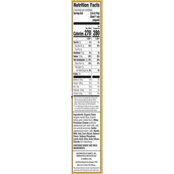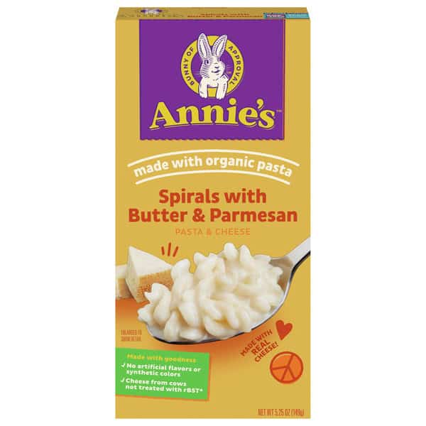 • Annie’s macaroni and cheese to bring creamy, cheesy goodness to your family dinner table with organic pasta, creamy butter and real Parmesan cheese