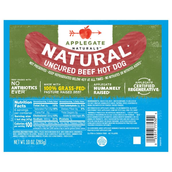 • Applegate, Natural Uncured Beef Hot Dogs, 10oz
